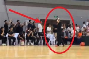 球迷视角显示,在张文逸走步后,广东主帅杜锋摸头沮丧,一脸苦笑,还想用手指一下但又收回了。