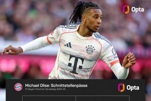 34场德甲12球15助攻!奥利塞上赛季16次成功直塞是德甲同期最多