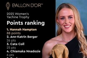 绝对统治力!女足雅辛奖投票详情:汉普顿88分断层第一,领先62分